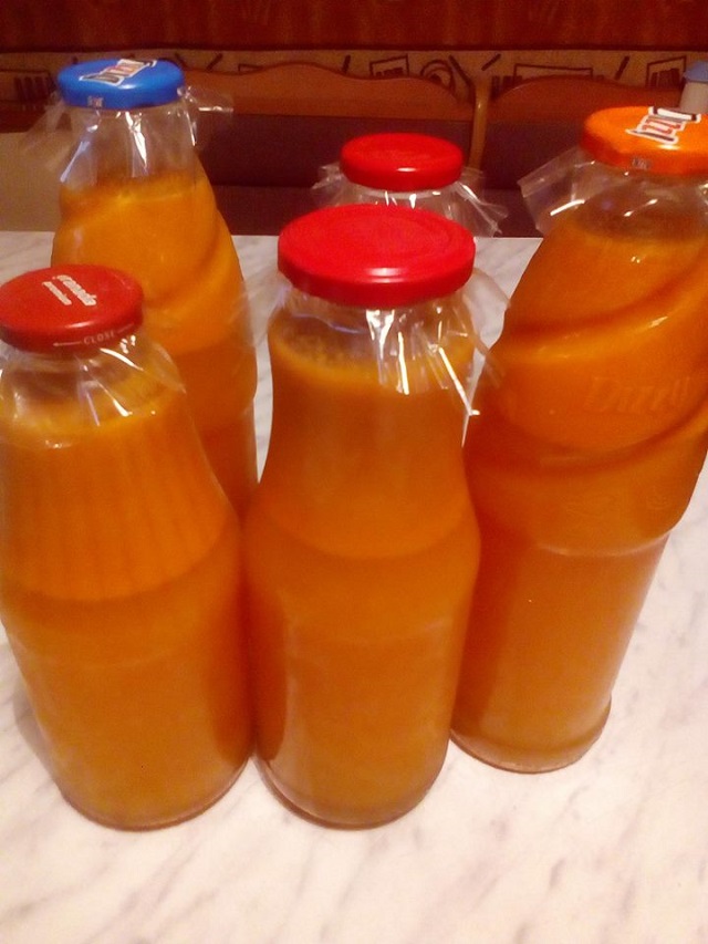 3 liter gyümölcs most homoktövis, 3 dkg citromsav összeturmixolom.