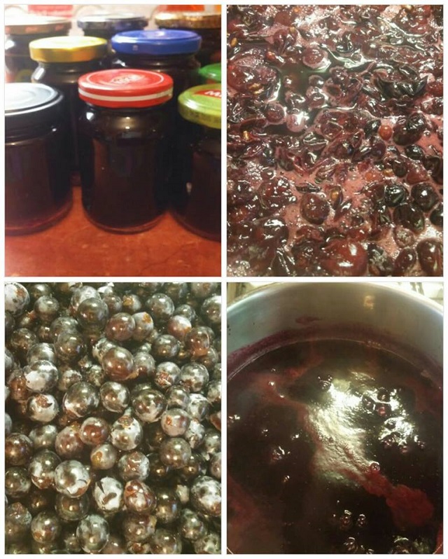 A leszemezett szőlőt egy órát főztem, amíg szétesett, ill besegítettem krumplinyomóval. Ezután szitán átpaszíroztam és visszaraktam főni. Kb 3 literhez adtam 1 kg cukrot , 1 citrom levét és héjját. Ezt még rotyogtattam, majd a végén két tasak dzsemfixet beletettem.